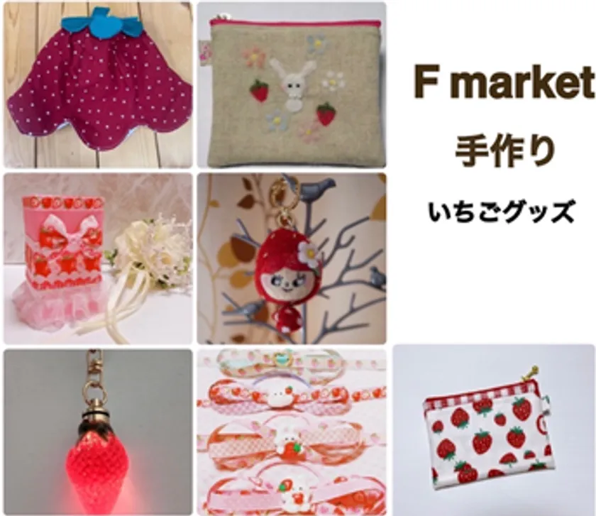 ハンドメイド作家による、人気のいちごをモチーフにしたハンドメイド作品。キーホルダーやポーチなど、一点ものアイテムを取り揃えております。