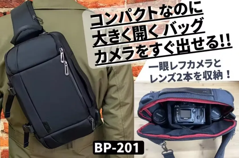 すぐに一眼レフを取り出せるカメラバッグ。 スタイリッシュでコンパクト、でも大容量 BP-201 2月26日までmachi-ya(CAMPFIRE)で クラウドファンディングを実施中