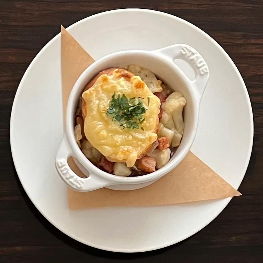 芳醇でコクのあるグリエールチーズをたっぷりと使った熱々のスープです。