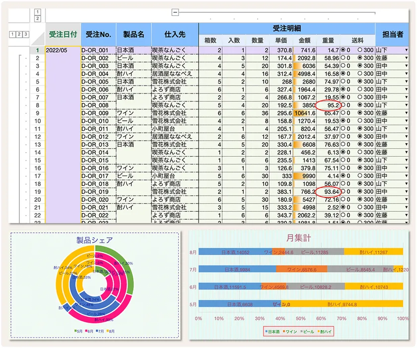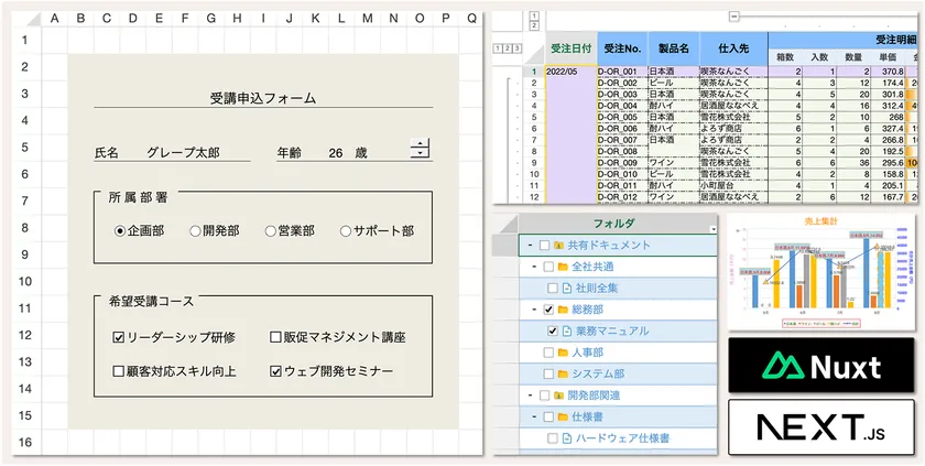 グループ化や条件付き書式、チャートやピボットテーブルなどをはじめとする豊富な機能の活用例をオンラインデモで確認することが可能です。