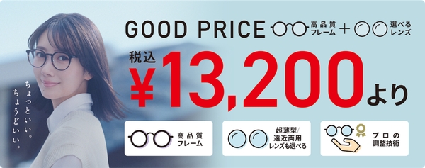 レンズ付 メガネ1組 税込¥13,200~、さらに見やすくなった遠近両用レンズをはじめ、パソコン・スマホなど比較的近くの距離が見やすい中近両用レンズ・近々両用レンズも追加料金なしで選べます。