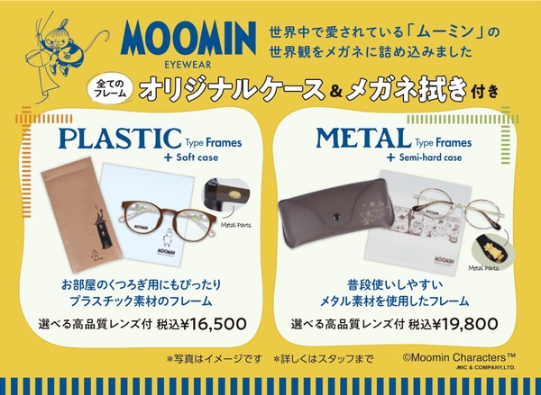 世界中で愛されている「ムーミン」。ムーミンコミックの世界観をメガネに詰め込みました。主人公のムーミンや愛らしい仲間たちをイメージしたプリントとカラーバリエーションです。