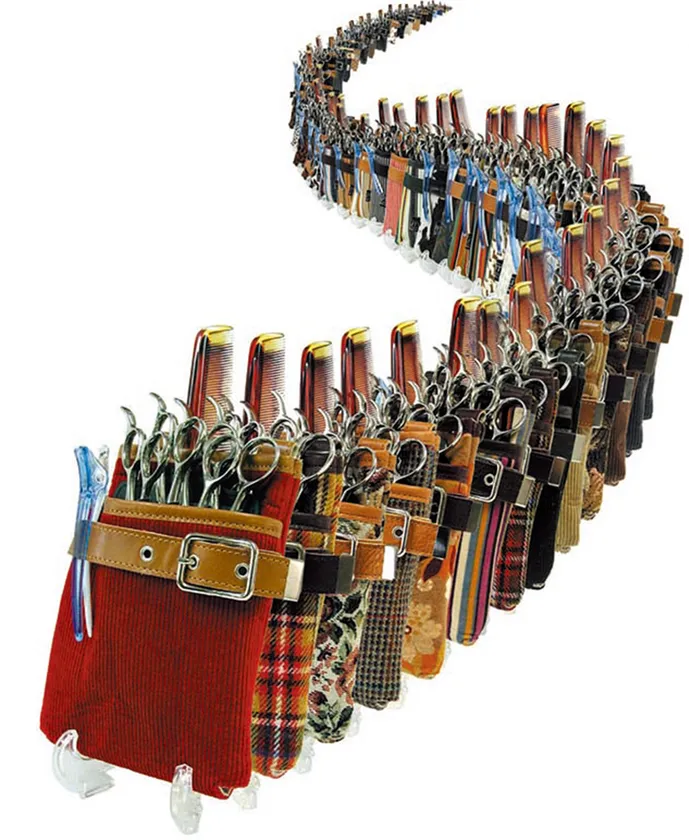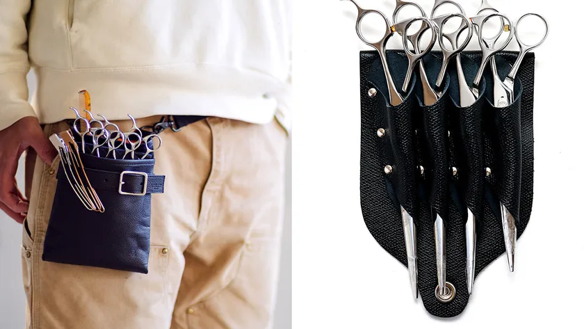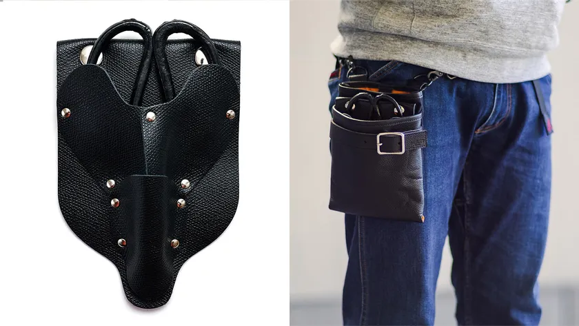 アタッチメントひとつでシザーケースに早変わり、プロ用のシザー(ハサミ)が4丁しっかり収まります。