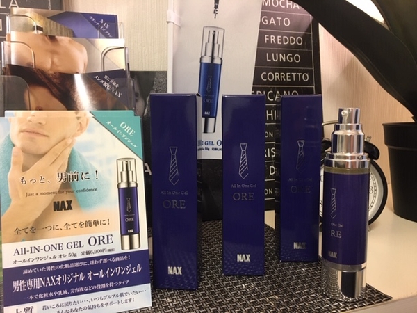 NAX渋谷店では、ORE(オールインワンジェル)を販売しており、このジェル一つで化粧水の保湿効果だけでなく、水分を上から蓋する乳液の効果も持ち合わせている万能のジェルになります。