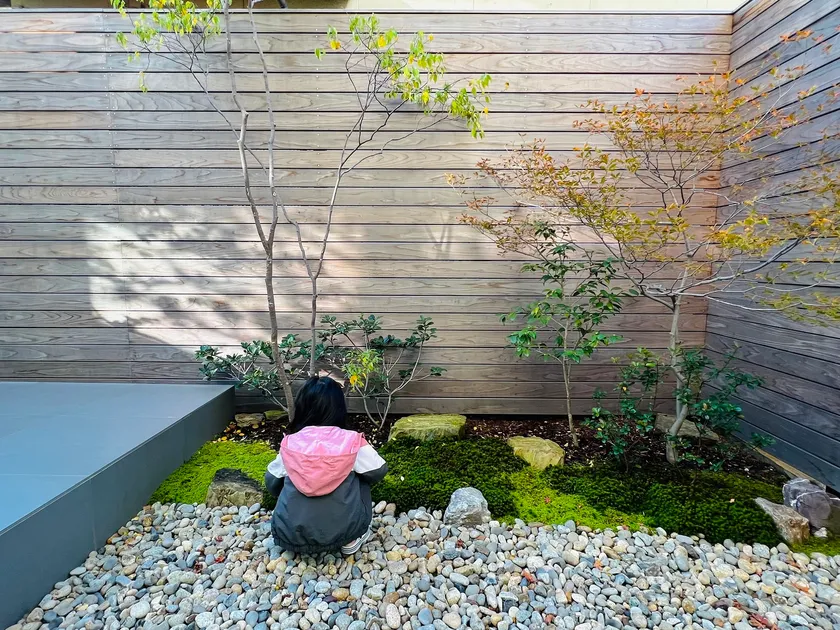 「自分たちで樹を植えたり、石を据えたり、苔を貼ったりしたことは大変でしたが、家族の思い出になりました。完成した光景を見て感動とも言える喜びを感じると同時に、娘の小さな手で植えた樹の新芽が出て、花が咲いている姿を見ると何とも言えない喜びを感じます。また、家族の樹を眺めている娘の後ろ姿にも心なしか成長を感じます。」(夫・T様)