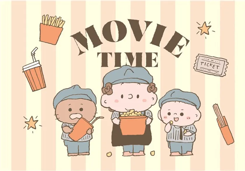Instagramのフォロワーが約75万人を超え、パパママ世代からの厚い支持を受ける人気クリエイターのつむぱぱが、本コラボのために描き下ろした可愛い新作アートが登場。つむぎ、なお、はじめが映画館スタッフの制服を着てポップコーンやドリンクを販売しているイラストや映画撮影スタッフに扮したイラストを使用した、映画館ならではの可愛いグッズが発売されます。
