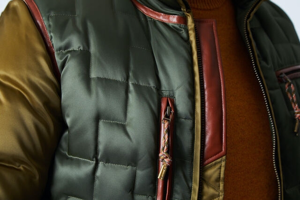 ダウンの特徴でもあるステッチデザインに力を入れることで意匠性が高まり、極小ロットならではの贅沢なデザインを縫製で表現しています。