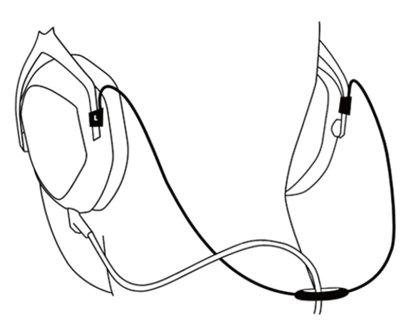 『VMH-D1』には、快適に演奏を楽しむためのさまざまな付属品が同梱されています。オーディオケーブルは3mと1.5mの2種類を用意。3mのケーブルは十分な長さがあることで、演奏時にドラムスティックがケーブルに絡まることもありません。さらに、ヘッドホン側の端子が真下でなく斜め後ろを向く設計のため、ケーブルが自然に背中側を通り、演奏の邪魔にならないよう調整されています。また、付属のケーブルホルダーをヘッドホンに取り付けることで、オーディオケーブルを首の後ろに取り回すことができます。
