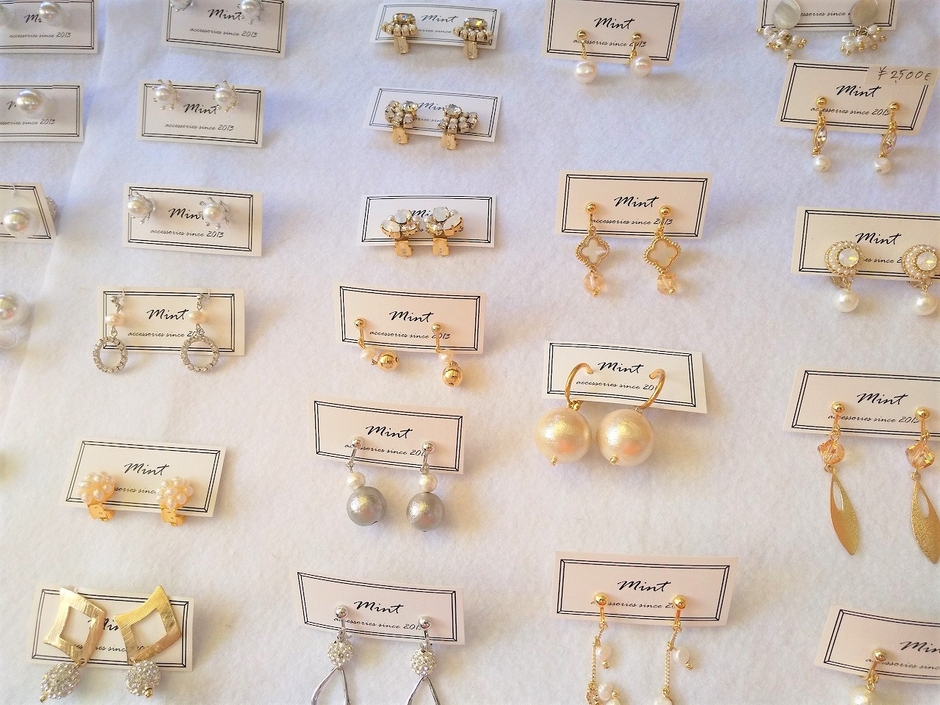 ●MINT(シンプルでいて人目を惹くアクセサリー。パールにスワロフスキーやチャームをプラス)