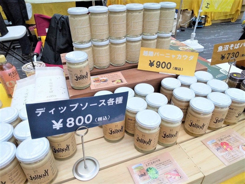 そのほか、加工品もディップソースやバーニャカウダソース、お煎餅などなど、新潟の食材を使って作られた面白いアイテムが並びます。