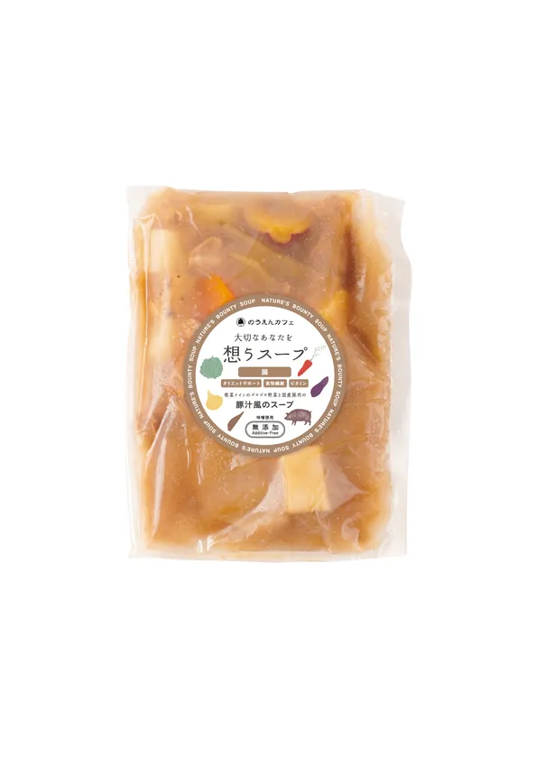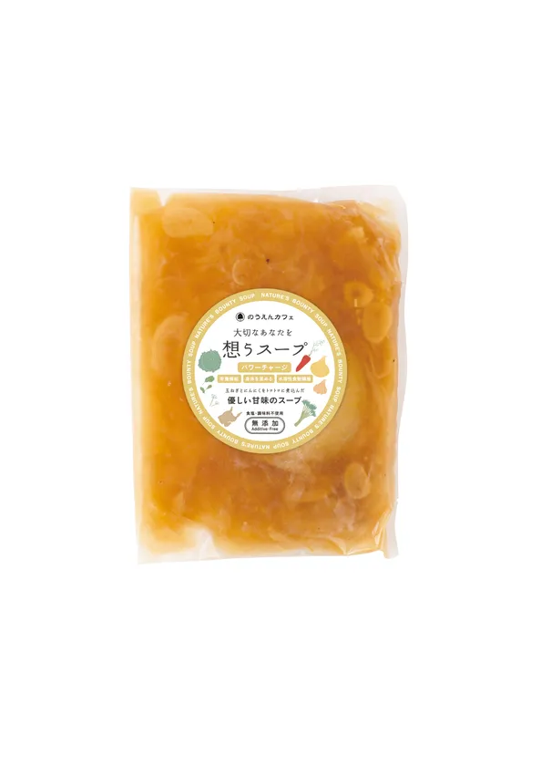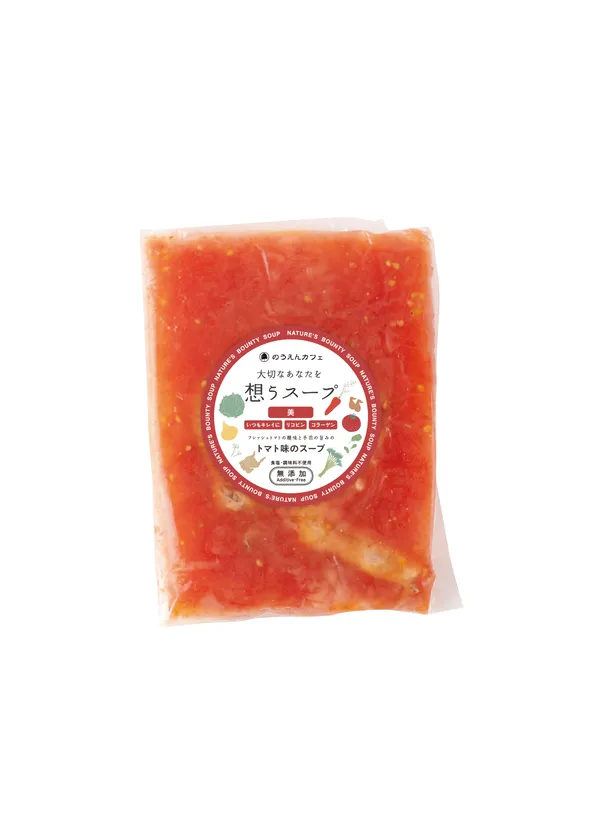 “大切な人に食べて欲しいスープ”をコンセプトに、身体への優しさにこだわり、化学調味料や保存料、塩も使っていないのが特長です。とれたての新鮮な野菜をローストして甘みを引き出し、じっくり2日間かけて煮込んだスープは心も身体も大満足する一品です。