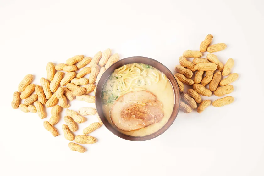 牛乳ベースの白いスープに味噌で深いコクを出し、旨みたっぷりの鶏白湯スープでクセを和らげ、さらに袖ケ浦の特産でもあるピーナッツをトッピングして香ばしさもプラスしました。
