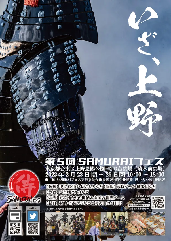SAMURAIフェス実行委員会は、3年ぶり、5回目となる「SAMURAIフェス」を2023年2月23日(木祝)~26日(日)に開催いたします。イベント開催まで1週間に迫ってまいりました。今回は、上野恩賜公園(噴水前広場)での開催となります。