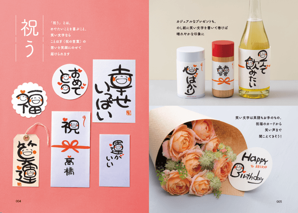 ◉──現在、「笑い文字講座」の受講生は4万人。600名を超える講師を育成。2022年にはロンドンと銀座で個展を開催。また、笑い文字だけではなく、アート書家としても活動の幅を広げる。日本郵便の切手「想いを伝える笑い文字シリーズ」では160を超えるデザインを作成。文具を販売する学研ステイフルや日本ホールマーク社でもグッズを展開する。「協会アワード2018」 で文部科学大臣賞を受賞。著書に5万部を突破した『感謝と喜びが伝わる「笑い文字」練習帳』(小社)など多数。座右の銘は「自分を大事にする」。