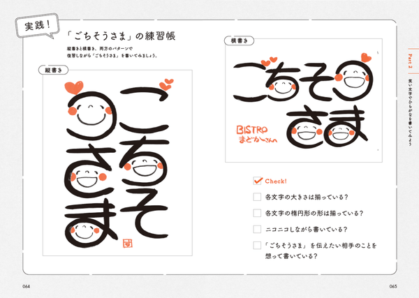5万部を突破した『感謝と喜びが伝わる「笑い文字」練習帳』、そして『遠慮なく幸せになればいい 68の言葉と笑い文字(※電子書籍のみ販売中)』(いずれも小社刊)に続き、あなたの生活をそっと彩る「笑い文字」が気軽に楽しく学べる練習帳に仕上がりました。