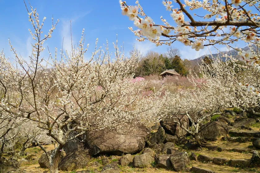 梅を見ながら焚き火囲んでゆっくりくつろぐアウトドアカフェ