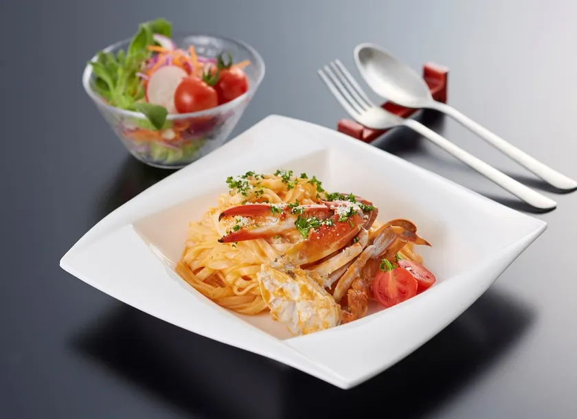 洋食調理例:パスタソースで「スパゲッティ」や「フェットチーネ」のように