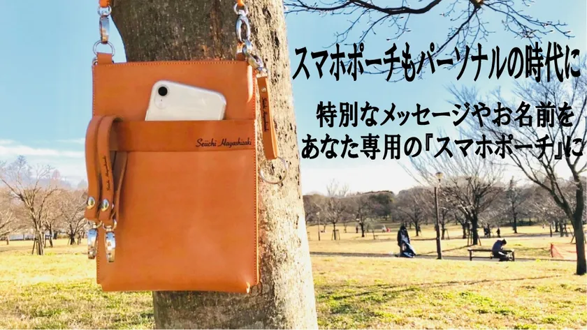 国内産牛ヌメ革(ロロマ)を使用し約40文字の名入れ彫刻が可能な大人のスマホポーチ『メッセージスマホポーチ』は、2023年2月27日(月)まで応援購入サイト Makuakeにて応援購入販売を実施しています。