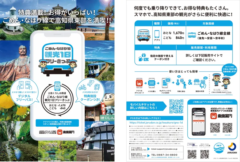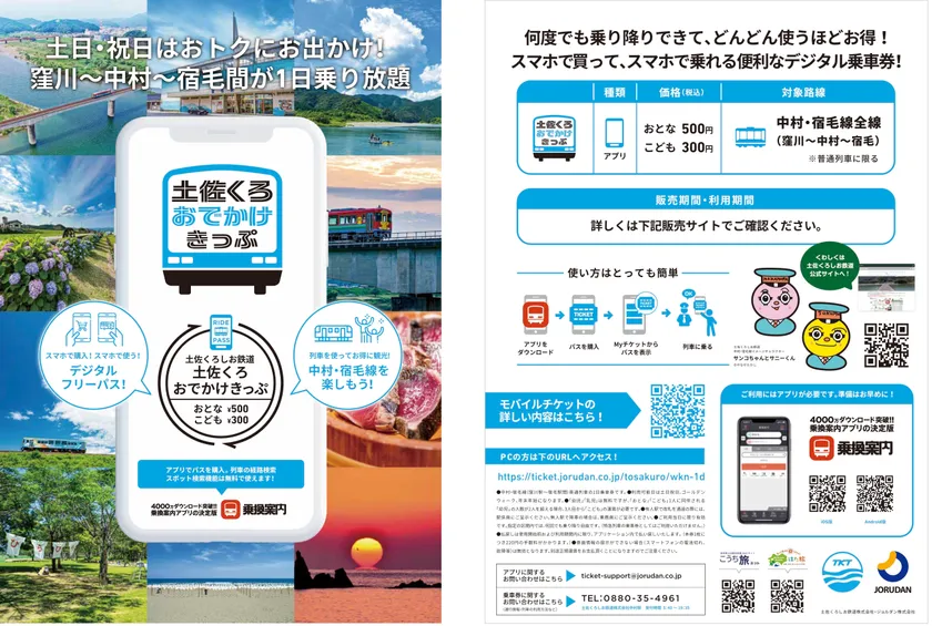 ジョルダン株式会社(本社:東京都新宿区、代表取締役社長:佐藤 俊和、以下「ジョルダン」)は、2月22日(水)より、土佐くろしお鉄道株式会社(本社:高知県四万十市、代表取締役社長:金谷 正文、以下「土佐くろしお鉄道」)が企画・運行する「土佐くろおでかけきっぷ」「ごめん・なはり線観光1日フリーきっぷ」をスマホで買えるモバイルチケットで販売します。