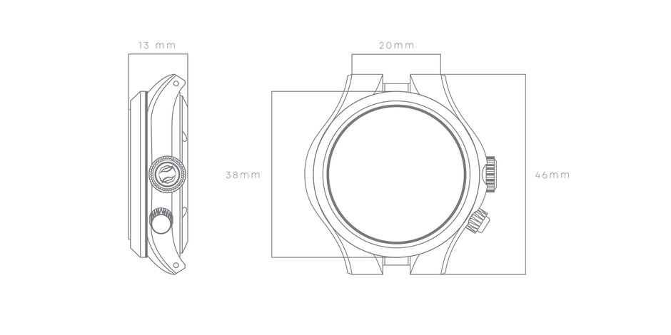 ケース径 : 38mm (Lug to Lug 46mm)