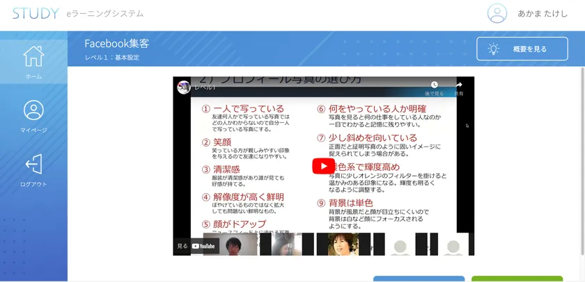 「STUDY」上で展開される講義動画(例)