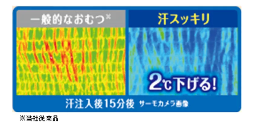 (2)“汗吸いとるシート”が汗を吸収して熱とともに外に発散することで、温度を最大2℃※3下げます。