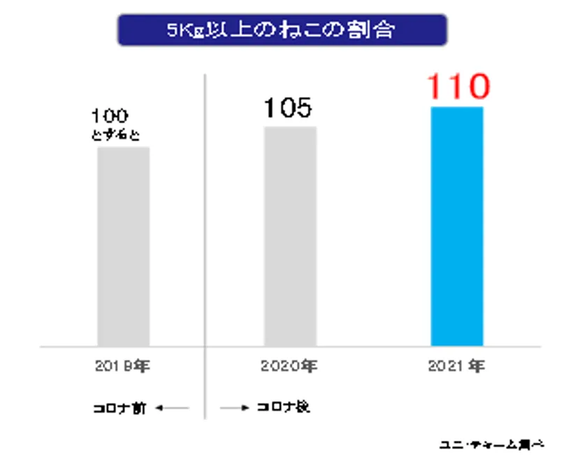 一方、コロナ禍で愛猫と触れ合う時間が長くなったことに伴い、おやつを与える頻度が高まったことなどから、5kg以上の大きなねこちゃんが増加しています。このような飼い主様からは「従来品ではサイズが合わず、着用を嫌がるので、大きなサイズがほしい」というご要望をいただいています。