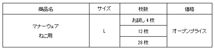 そこでこのたび、『マナーウェア』ねこ用からLサイズを発売します。