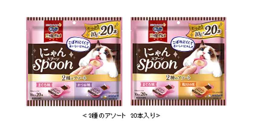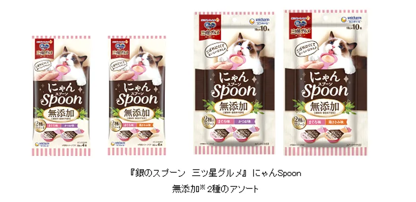 ユニ・チャーム株式会社(代表取締役 社長執行役員:高原豪久)は、スプーンタイプでこぼれにくく、しかもおいしいとご好評の、猫用ウェットおやつ『銀のスプーン 三ツ星グルメ』にゃんSpoonから“無添加※2種のアソート”を、2023年3月13日に全国で発売します。