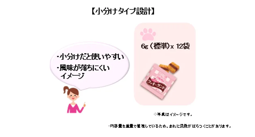 一方、飼い主様からは、「愛猫が食べ飽きないように、色々な味のおやつをあげたい」というご要望もいただいています。