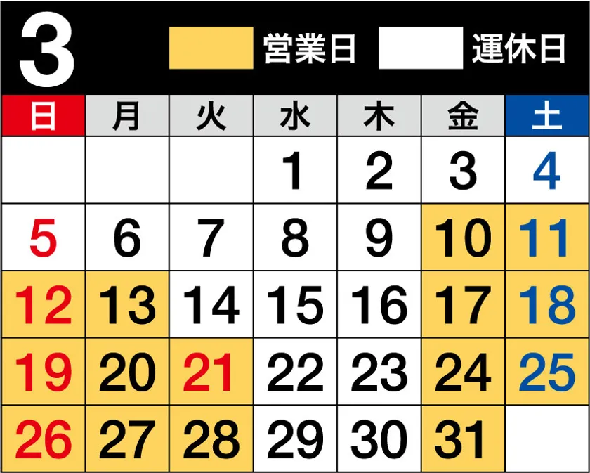 3月営業日