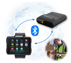 二つの製品はBluetooth接続で併せてご使用いただくことができます。 例えば、右手はバーコードをスキャン、左手はスキャンしたデータを手元で確認することができるなど、 作業の大幅な効率化を実現します。