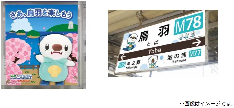 今回、さらに鳥羽・志摩地域のPRを強化するため、賢島駅には志摩市の補助金を活用して新たに、鳥羽駅には追加で、それぞれミジュマルの装飾を施します。装飾は駅の柱や壁面だけでなく、ホームの駅名標にも可愛らしいミジュマルをデザインしています。