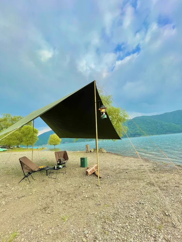 *雨の日でもタープの下で焚火をやるには、コットンやポリコットンの生地のタープになるが、重量があり少しの風や雨でも折れてしまうポールがあることに気づいた
