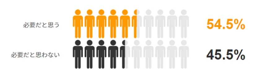 リスキリングの必要性の有無については、54.5%が「必要だと思う」と回答し、ほぼ半々の回答となりました。