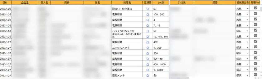 2023年2月、株式会社三和鍍金(本社:群馬県高崎市、代表取締役:武藤 篤、以下「当社」)は自社開発した顧客管理ツールの実践運用を本格的に開始いたしました。少ない人数で膨大な案件に対応するためにできるだけ管理の手間を減らしつつ、今後も増えていくと思われる個々の案件の情報を迅速かつ正確に確認できる方法を模索した結果、項目を精査しながら独自の管理表を作成することで少人数体制での効率最大化を実現。以前から使用している『売値計算ツール(自社開発の売値計算システム)』と併せてスピード感のある対応が可能となりました。突発的かつ緊急的な要件にも対応が可能で、必要な情報を必要な時に間違うことなく確認ができます。また、そこから抽出したデータの分析をもとに顧客ニーズの再検討が容易になり、婉曲的にお客様のニーズをさらに満足させる施策を考案することが可能となります。