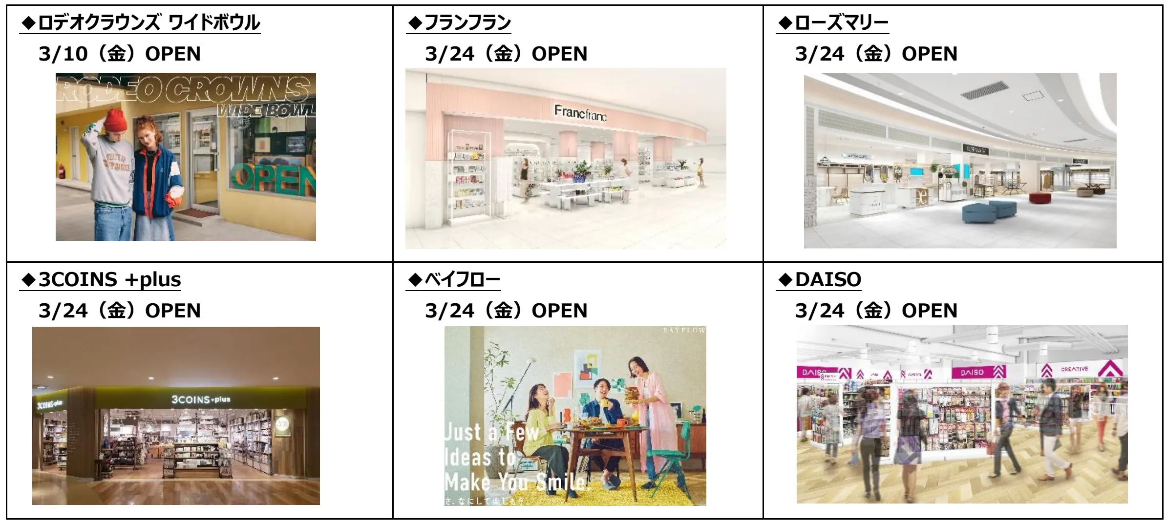 コロナ禍においても、生活の変化やお客さまの新たなご要望に目を向け、インドアグリーンショップや大型アウトドア・スポーツショップの導入を始めとし、ライフスタイルへのアプローチを中心に新たな魅力を発信してきた当施設。今回の第1弾リニューアルでは、さらに多様化するライフスタイルに対応するため、ホビー系ショップを追加。また、人気の雑貨、コスメ、アパレル店舗の大型化を図ることで、より一層ご満足いただけるラインアップとします。さらに、館内設備についても、ベビー休憩室の新設や新たなデジタルサイネージの導入で、よりお客さまに充実した時間を過ごしていただける施設を目指してまいります。