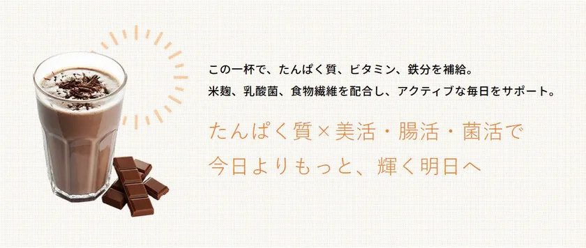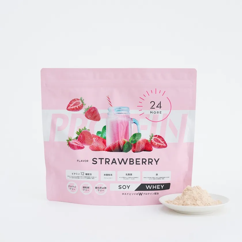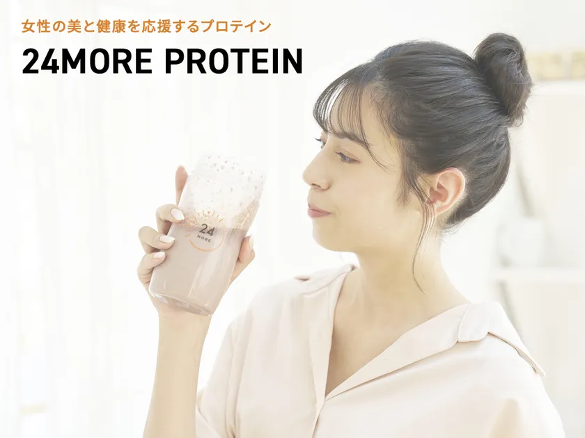 『24MORE PROTEIN』は、女性には必須の栄養素であり現代の食生活では圧倒的に不足しがちなたんぱく質を手軽に摂れるというだけでなく、ビタミン12種類、鉄分、乳酸菌、米麹粉末、食物繊維などの栄養素を飲むだけで手軽に摂れる、まるで魔法のようなプロテインです。