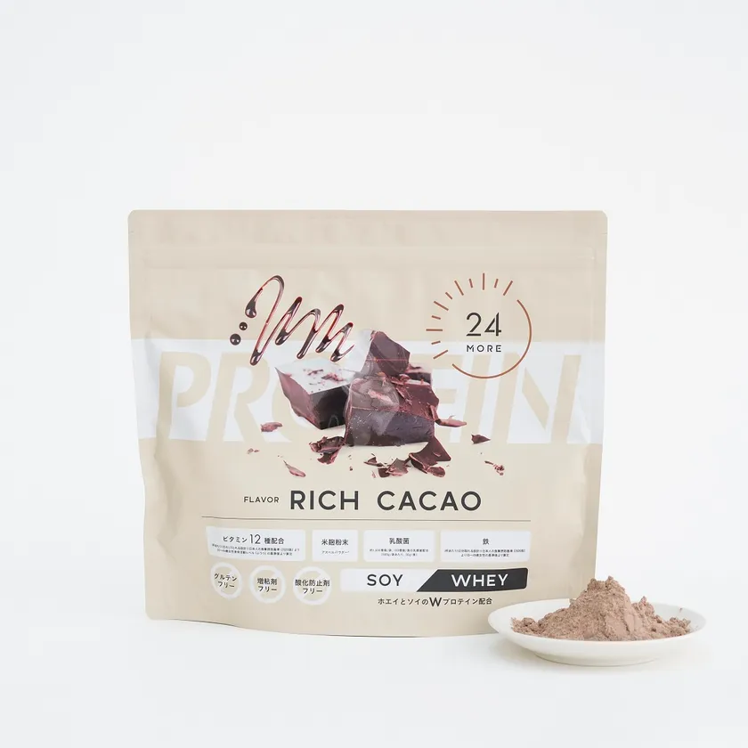 『24MORE PROTEIN』は、人工甘味料・グルテン・増粘剤・酸化防止剤を一切使用しておりませんので、どなたでも安心してお召し上がりいただけます。