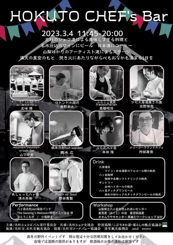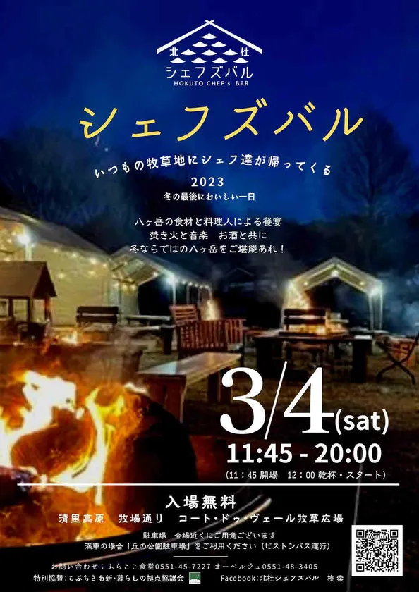 こぶちさわ 新・暮らしの拠点協議会、 名シェフが八ヶ岳の食材で腕をふるう野外イベント 『北杜シェフズバル2023』に 特別協賛で出展!3月4日(土) 山梨県北杜市で開催
