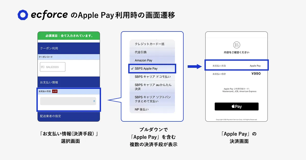 株式会社SUPER STUDIO(東京都目黒区、代表取締役 林 紘祐、以下「SUPER STUDIO」)とソフトバンク株式会社の子会社であるSBペイメントサービス株式会社(東京都港区、代表取締役社長 兼 CEO 榛葉 淳、以下「SBPS」)は、これまでSUPER STUDIOが提供するSaaS型ECプラットフォーム「ecforce(イーシーフォース)」でSBPSのオンライン決済サービスを連携し複数の決済手段を提供してきましたが、2023年3月1日からApple Payを新たな決済手段として提供します※1。Apple Payは定期購入に最適な継続課金に対応しており、SaaS型ECプラットフォームでApple Payの継続課金を利用できるようになるのは今回が初めてです※2。