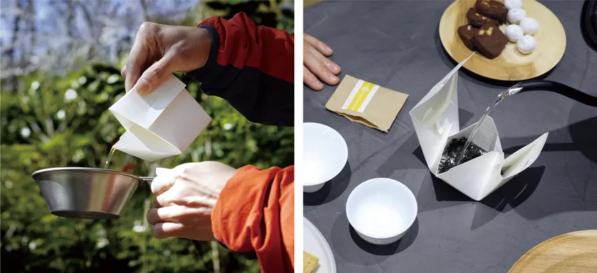 日本茶は、急須を使って淹れることで、その芳醇な味や香りを余すことなく楽しむことができます。また、抽出を待つゆったりとした時間や丁寧に淹れる所作も大きな魅力です。そんな急須で淹れる本格的なお茶を、急須がない方にも場所を選ばず気軽に楽しんでいただける「紙の急須」を開発しました。