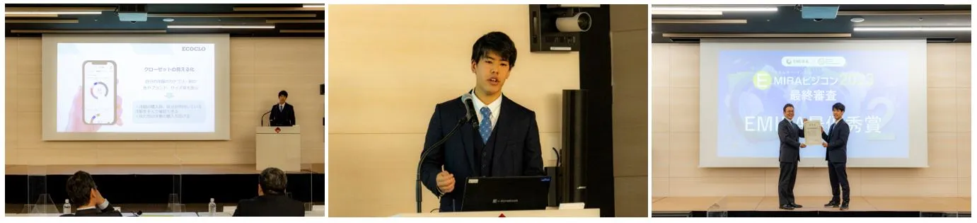 EMIRA×PEP共催ビジネスアイデア学生コンテスト(文部科学省後援) 「カーボンニュートラル×エネルギー」について、 全国の学生がビジネスアイデアを生み出す! 最優秀賞はECOCLO「アパレル業界の変革より、環境にやさしい世界を目指す」 洋服の長寿命化を目指し、大量廃棄の抑制に着目 「イノベーションを巻き起こしていけるように頑張っていきたい」