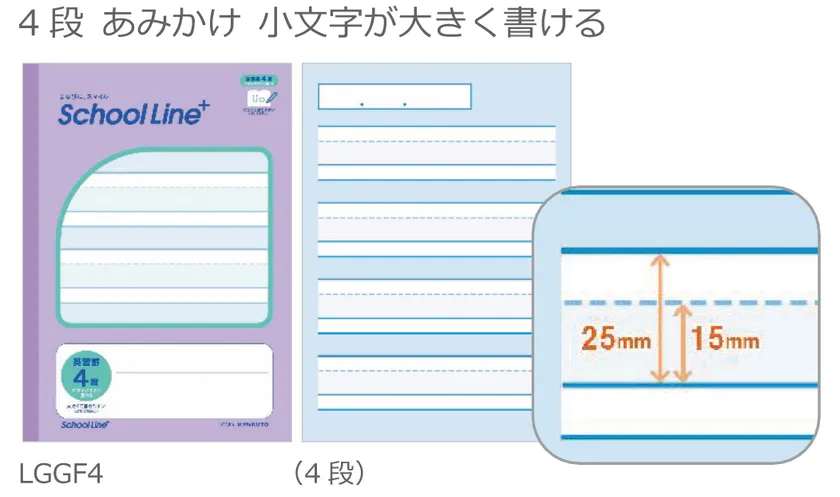 英習罫 4段 あみかけ 小文字が大きく書ける LGGF4