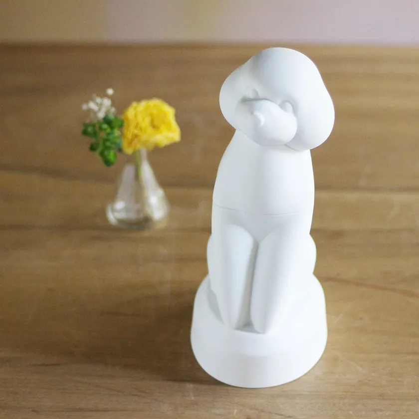 彫刻家として飼い主の為に造形し、焼き物として具現化した作品は心に寄り添えるように、チワワ、トイプードルの可愛らしさを骨壷とは思えないインテリア性で表現しています。