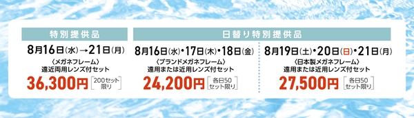 遠用または近用レンズ付セットは各日50セット限りでのご用意です。