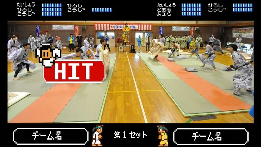 また、大会2日目の26日(日)12:30より準決勝と決勝戦の試合の様子を、まるで「くにおくん」の世界にいるかのようなリアルとゲームを融合させたオリジナルアレンジでLIVE配信いたします。是非本気のまくら投げの熱気をお楽しみください。