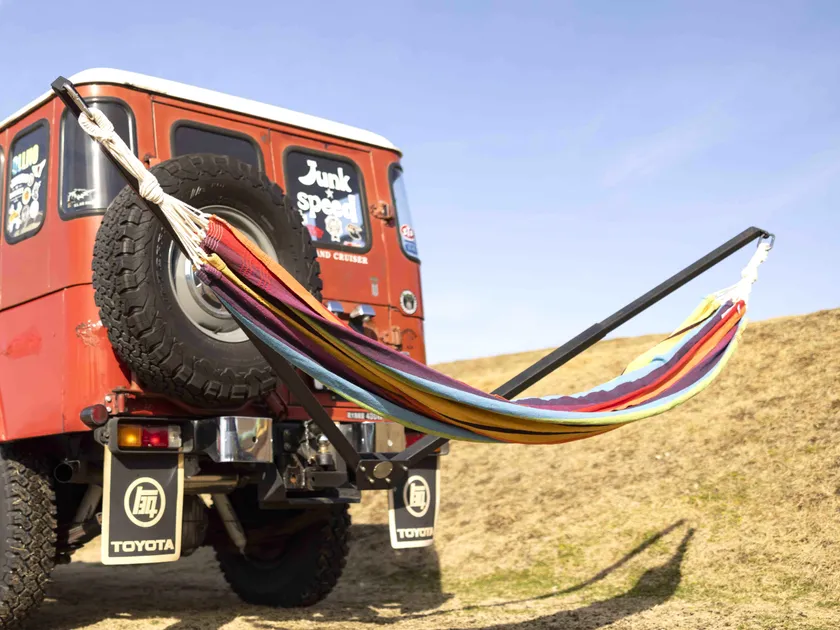 車のヒッチメンバーや柱に取り付けるハンモックアーム 『サニーハンモック』2023年3月 本格販売スタート! 静岡県三島市のカスタムバイクショップによる日本初*の完全国産品