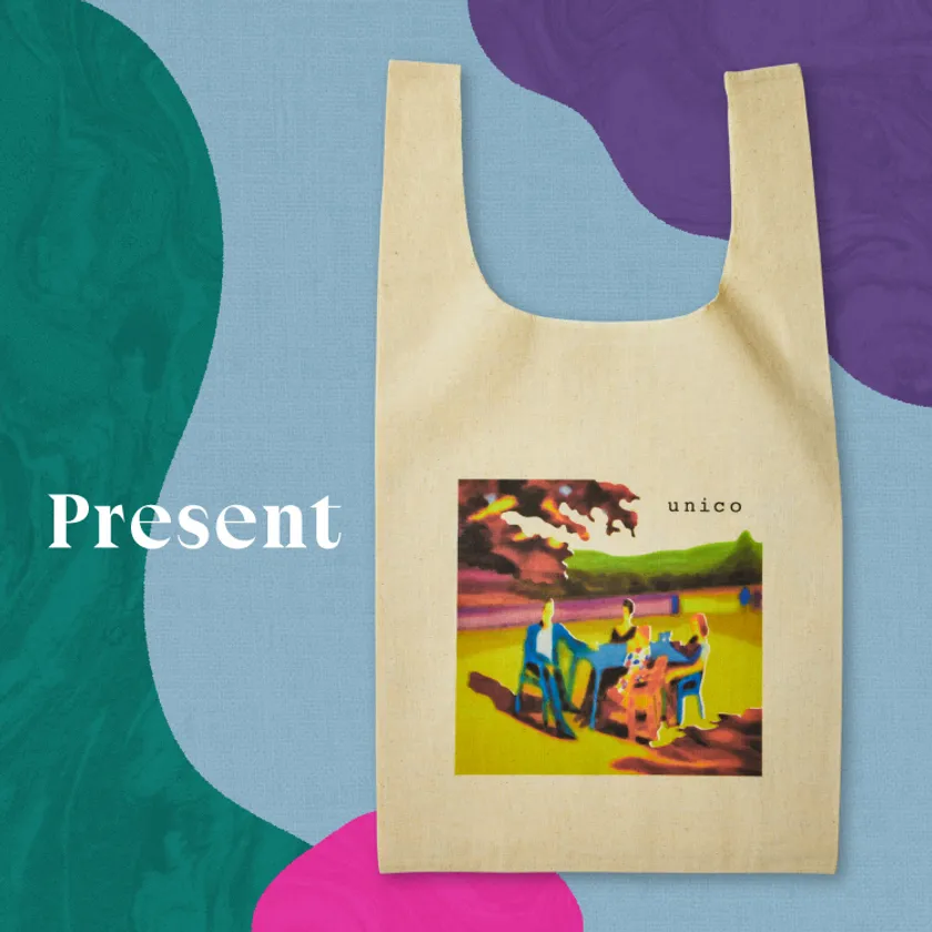 2023年のunico家具カタログのイラストを手掛けた、アーティストの加藤崇亮さんのイラストをプリントしたオリジナルマルシェバッグをご用意。