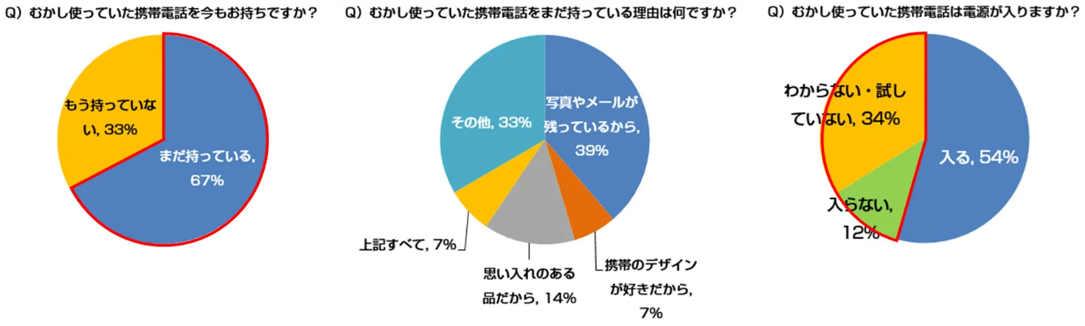 ・約7割がむかし使っていたケータイ電話を「まだ持っている」
